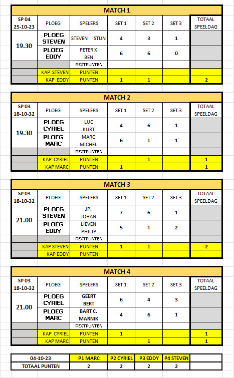 Alle ploegen scoren 2 punten.