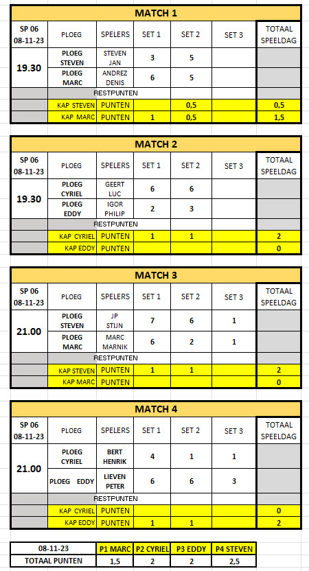 Bij nazicht door onze VAR is er per abuus een fout ontdekt in de uitslag van speeldag 6 in onze vorige Tabel. Hieronder vindt u (hopelijk) de correcte tabel.